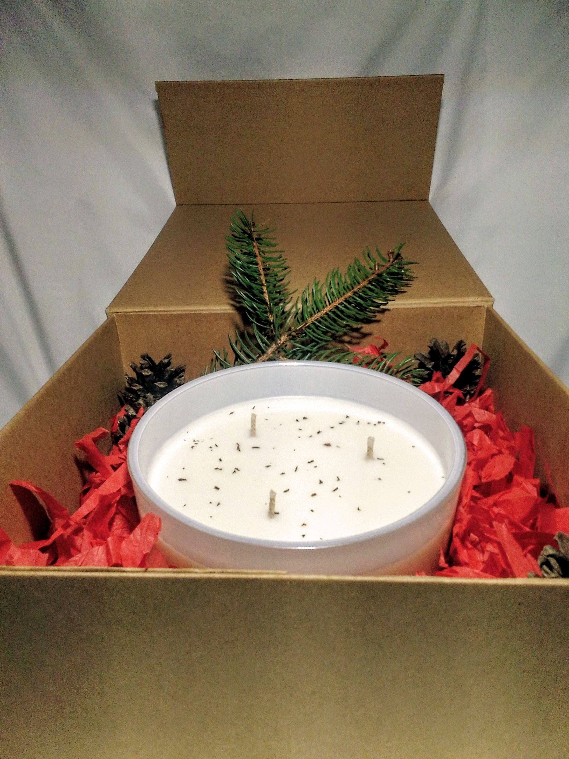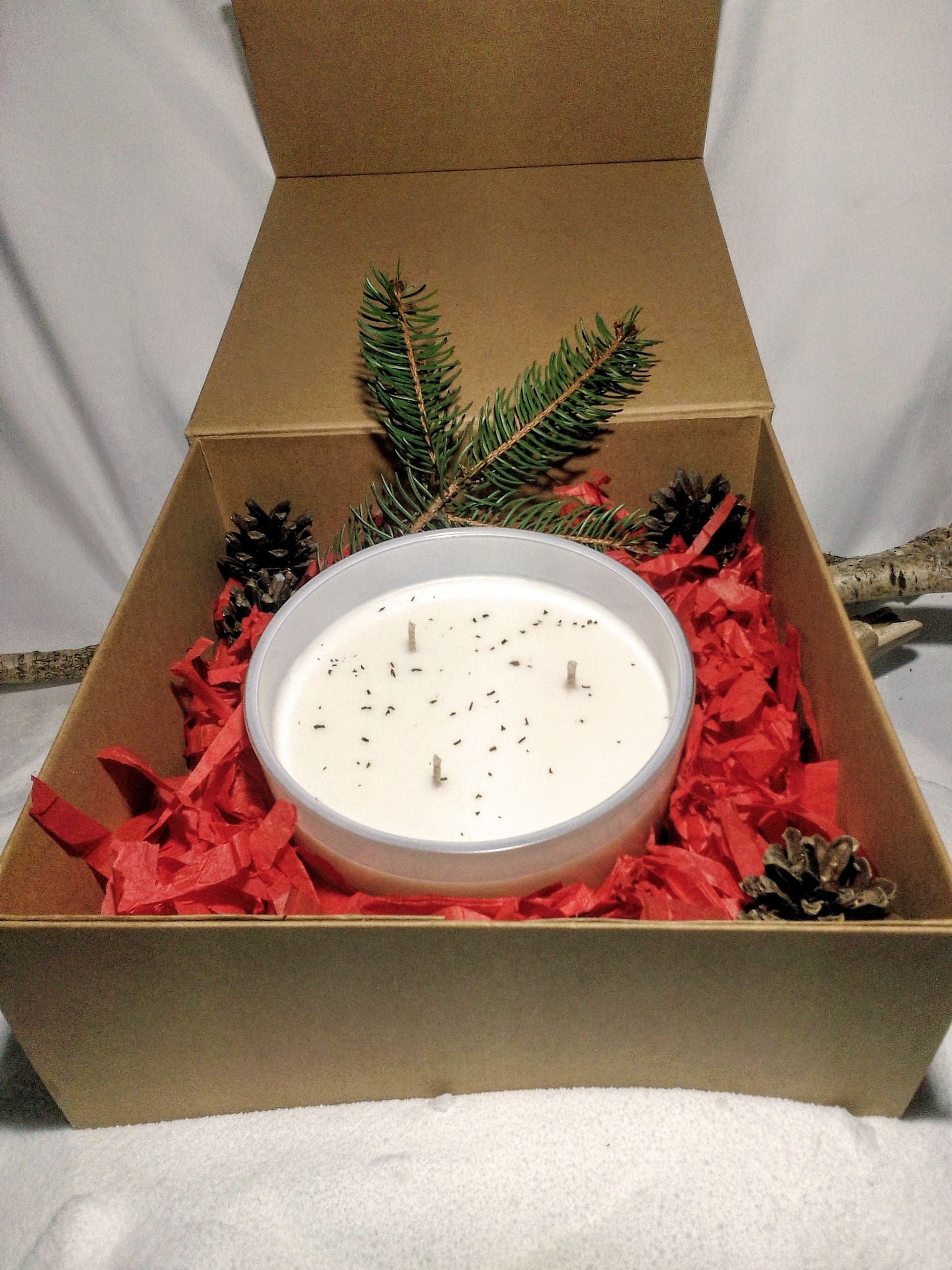 Ce coffret comprend une jolie bougie 3 mèches dans un contenant en verre laqué blanc.